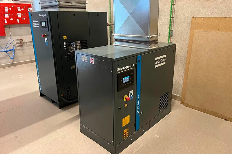 A Neofluid posem a la teva disposició una nova gamma de compressors d’aire industrials pensats per oferir el màxim rendiment amb el mínim cost operatiu. Són equips robustos, fiables i dissenyats amb criteris d’eficiència energètica i sostenibilitat, ideals per afrontar les demandes dels entorns de producció més exigents.